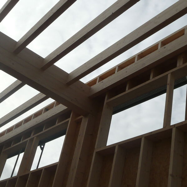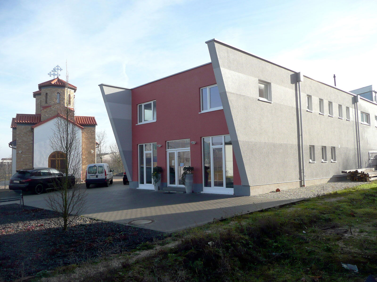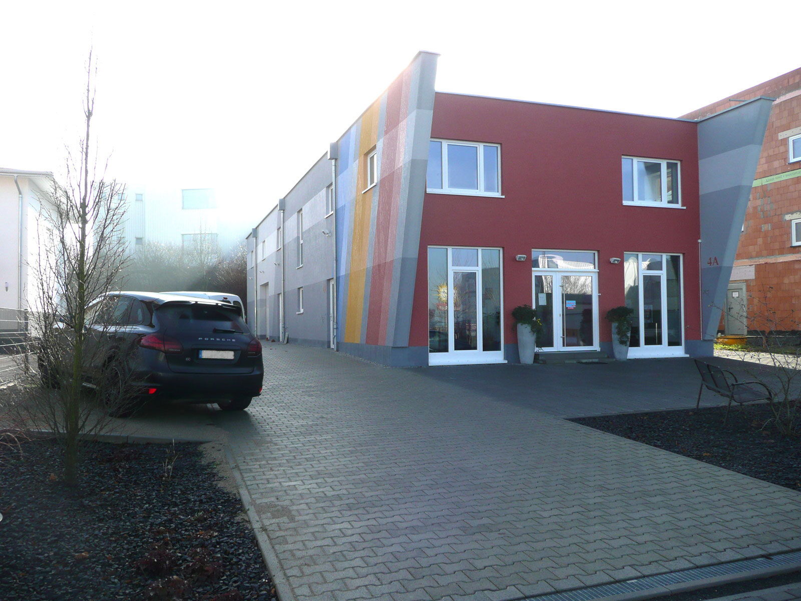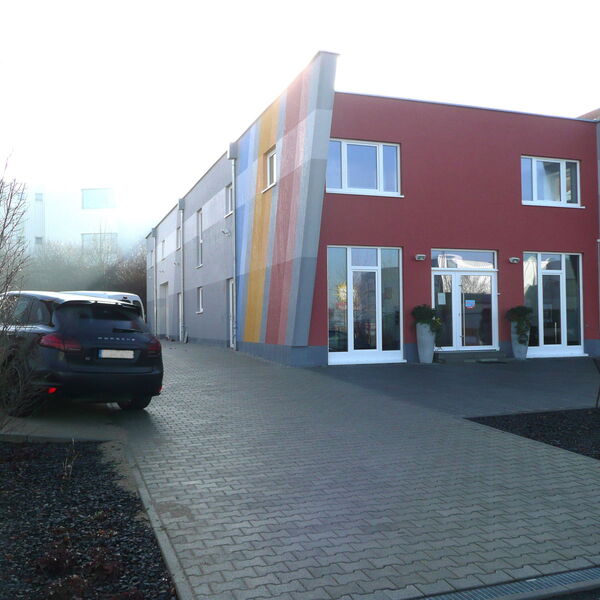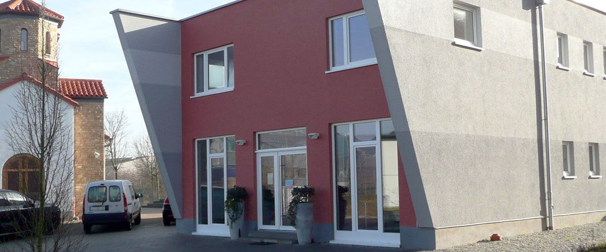Neubau eines Verwaltungsgebäudes mit Ausstellungsräumen und Lagerhalle als Firmensitz eines mittelständischen Maler- und Stuckateur-Fachbetriebs. Das zweigeschossige Verwaltungsgebäude mit begrüntem Flachdach wurde in Holzständerbauweise erstellt; die Zwischendecke aus massivem Kreuzlagenholz, der nichttragende Innenausbau erfolgte in Trockenbauweise. Der hohe Vorfertigungsgrad der Holzbaukonstruktion ermöglichte bei sehr guten energetischen Kennzahlen eine kurze Bauzeit und frühzeitige Nutzung.