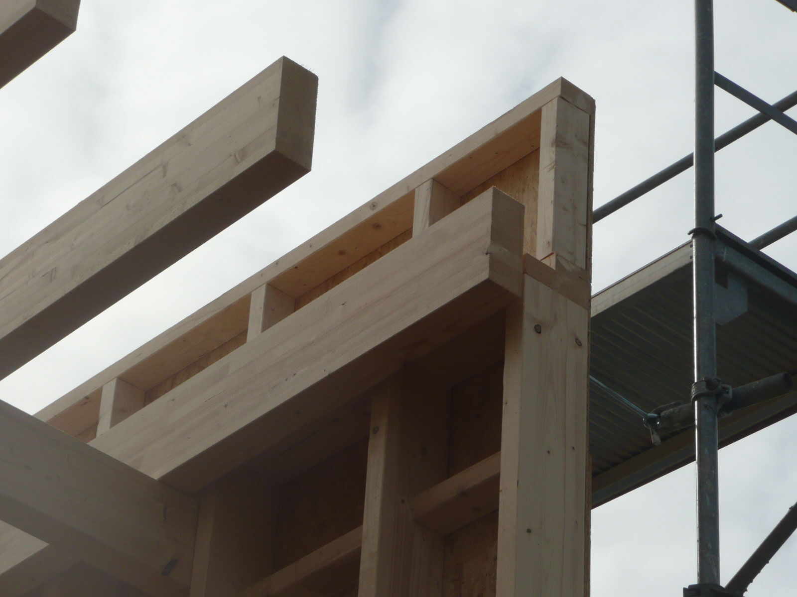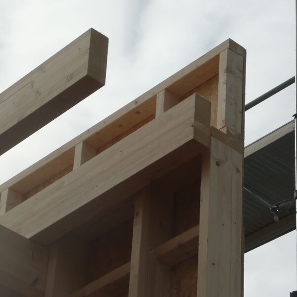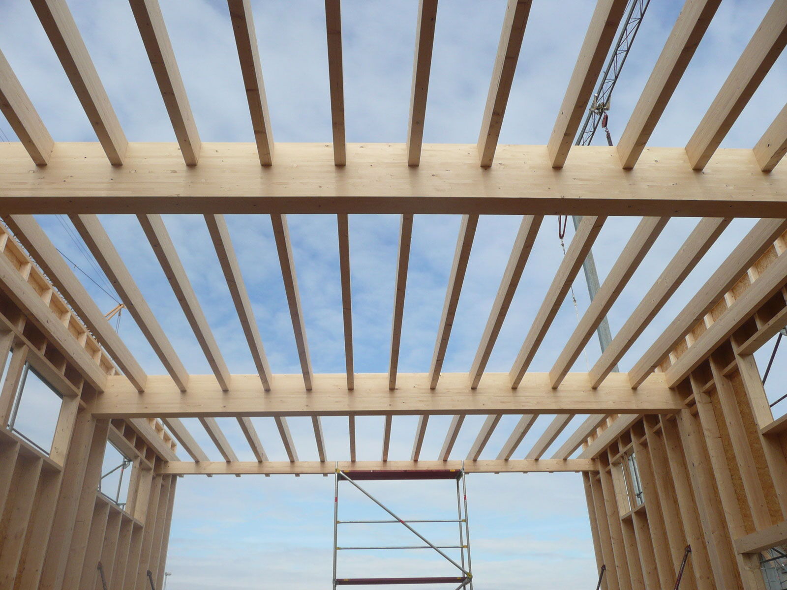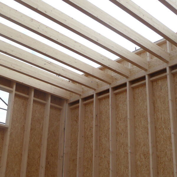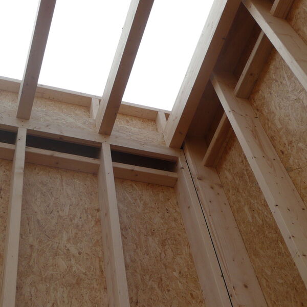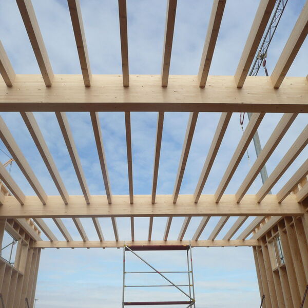 Neubau eines Verwaltungsgebäudes mit Ausstellungsräumen und Lagerhalle als Firmensitz eines mittelständischen Maler- und Stuckateur-Fachbetriebs. Das zweigeschossige Verwaltungsgebäude mit begrüntem Flachdach wurde in Holzständerbauweise erstellt; die Zwischendecke aus massivem Kreuzlagenholz, der nichttragende Innenausbau erfolgte in Trockenbauweise. Der hohe Vorfertigungsgrad der Holzbaukonstruktion ermöglichte bei sehr guten energetischen Kennzahlen eine kurze Bauzeit und frühzeitige Nutzung.