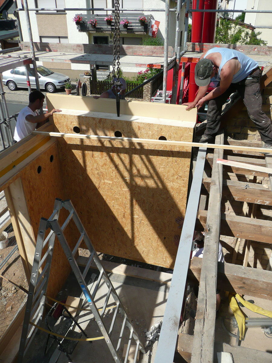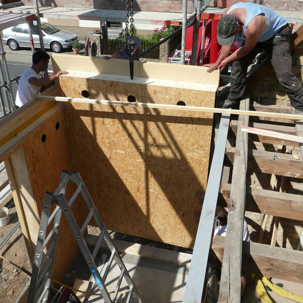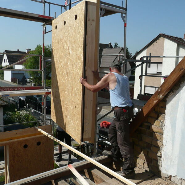 Das ehemalige Siedlungshaus von 1937 mit einem Anbau aus den 1980er Jahren wurde komplett entkernt und durch einen zweigeschossigen Neubau in Holzständerbauweise zu Wohnzwecken erweitert. Die Dämmung des Ständerwerks und die Sanierung des Dachstuhls erfolgten aus energetischen und ökologischen Gründen mit Holzfaserdämmplatten und Zellulose-Dämmung.